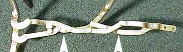 Front bow is not shown in these pictures, it would be mounted on the right. This picture shows how the rear frame hoop assy looks from inside the car as you are just starting to pull the top up over your head. Do not attempt to attach the front bow unless these bars are almost completely straight, as shown in the picture on the right.