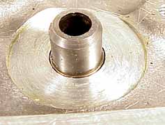 There are two types of 1600 cylinder heads, as far as valve seals go. All SAE aluminum heads are the early type on the left. The metric heads without air injection ports can be either type. The metric heads with air injection ports all use the late style valve seal area shown on the right. NOTE: The guides look different but are just different production batches, any head could have either type, and this has no bearing on the seal situation. IRON HEAD NOTE: Although the iron 1600 heads I've seen have guides in them, supposedly some real early 1600 iron heads were reworked 1500 heads. The 1500 iron head "looks" like it has guides but if you look closely you can see the upward projection that holds the valve is all one piece, and not separate with a wire retainer as shown below. And if it does NOT have separate valve guides (which measure .563 in diameter) you'll have to measure the upward projection that the valve goes into. If it measures .580 (like the 1500) you'll have to turn down these projections to about .563 to get the #132-32 valve seal to fit over it. The valve seals have to be pushed on with a little force, but you should be able to do it with your hands or a GENTLE tap. |